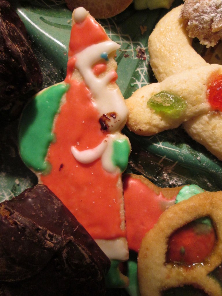 The final touch in our house is displaying the whole array of cookies on our favorite Christmas-tree plate, so that the more you eat, the more you are rewarded with the beauty of the dish. The emptying and refilling of that cookie tray is a win-win: almost like having your cake and eating it too.