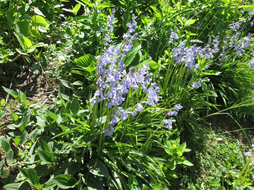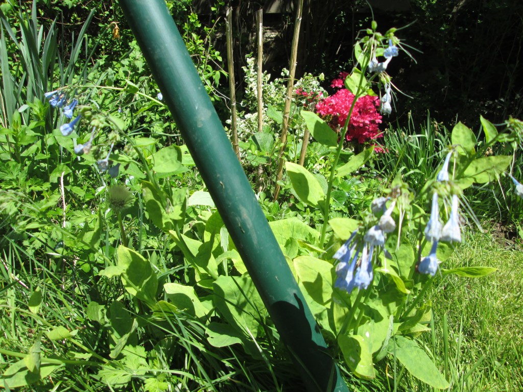 and the dark-magenta tulips, next the Virginia bluebells, with their blooms the color of a twilit sky,