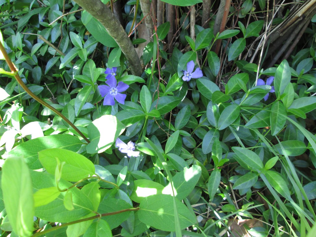 the periwinkle vincas and the dark-amethyst violets, uninvited but always welcome.